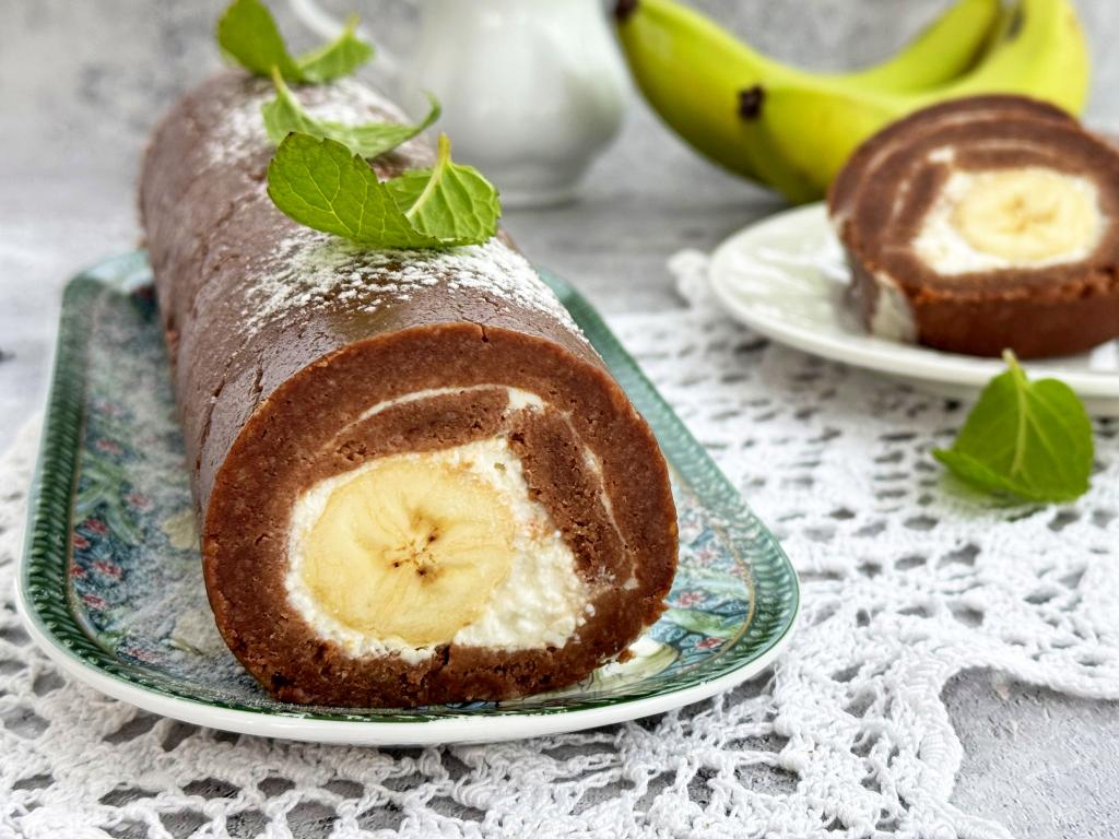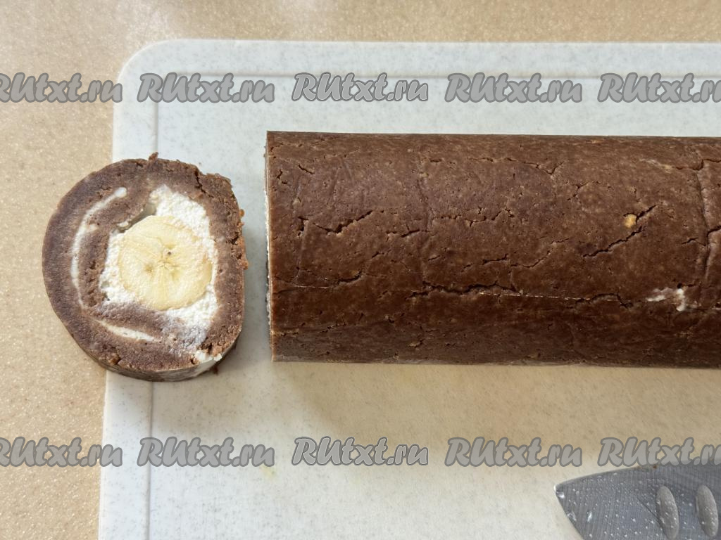 На следующий день рулет, приготовленный из печенья и банана без выпечки, освободить от фольги.