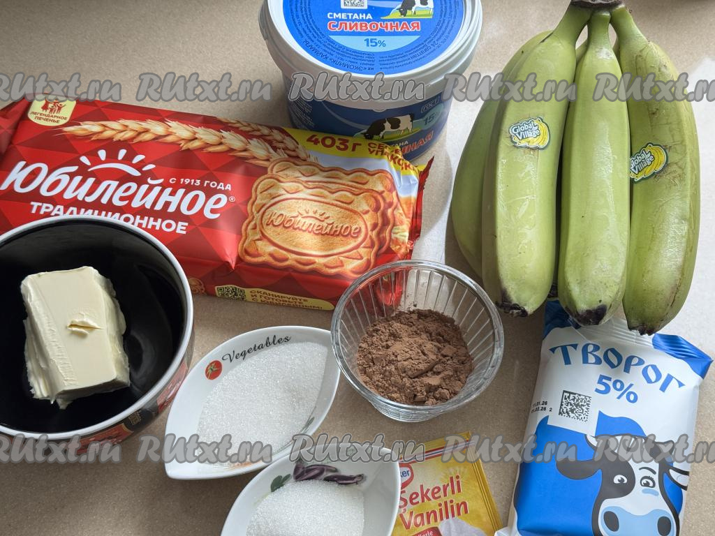 Для приготовления рулета из печенья и банана без выпечки потребуется: