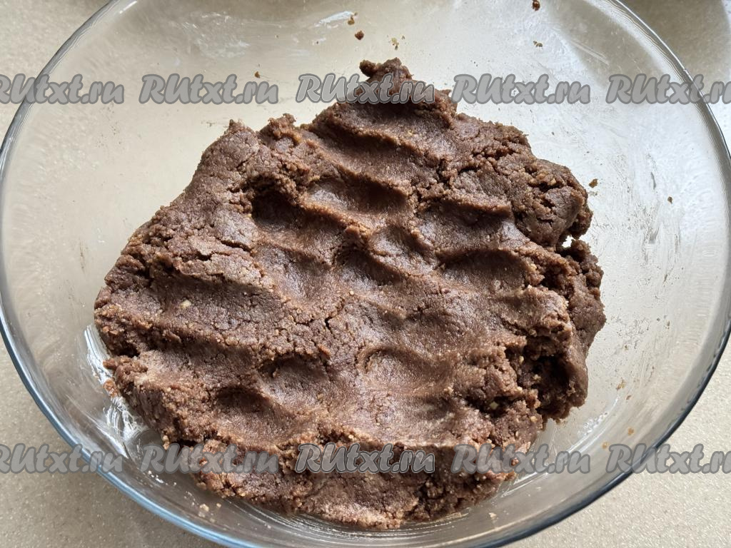 Перемешать песочно-банановую массу руками, она должна получиться пластичной и однородной.