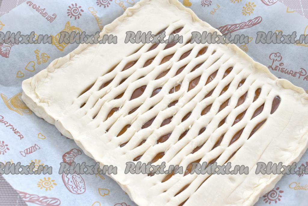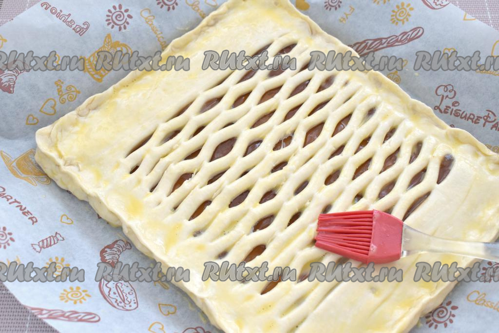 Пирог с яблочным повидлом из слоёного теста