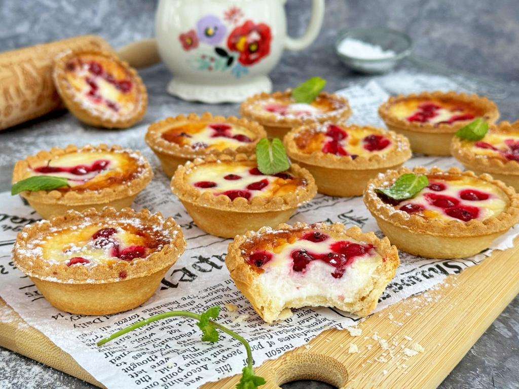 Тарталетки с готовыми мини-сметанниками остудить. Перед подачей можно, по желанию, присыпать сахарной пудрой.