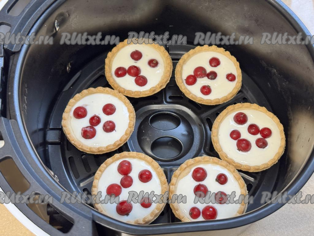 Отправить чашу в аэрогриль, запекать мини-сметанники в тарталетках при температуре 180 градусов 10 минут.