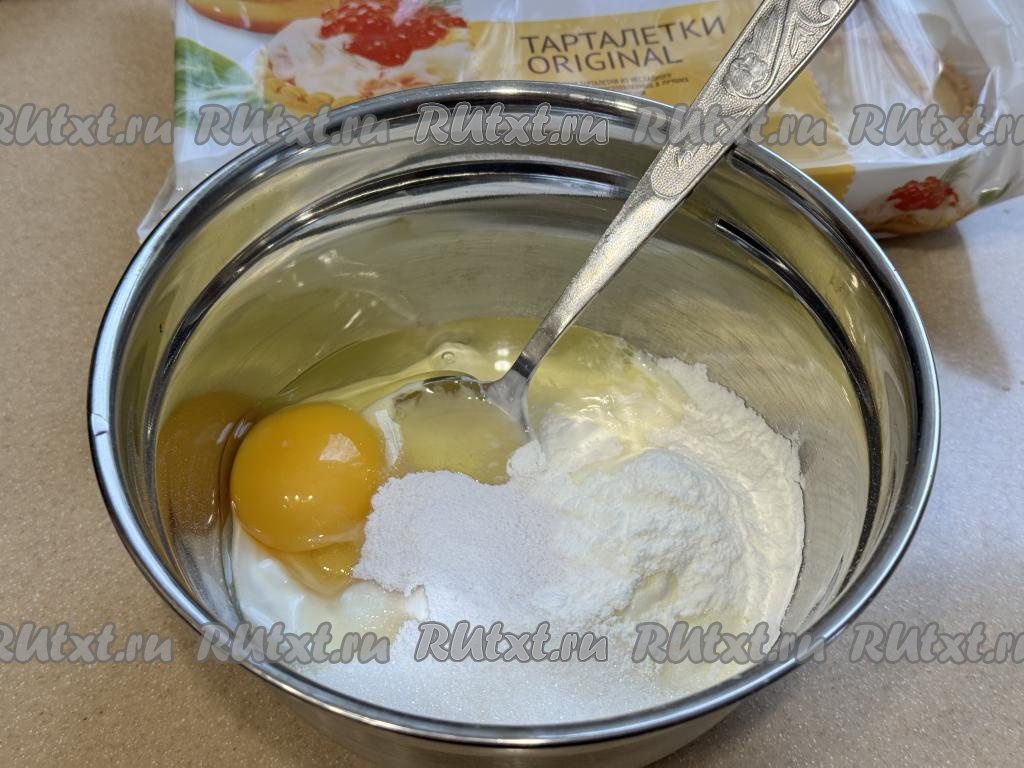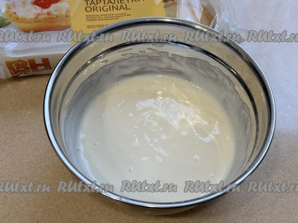 С помощью столовой ложки заполнить песочные тарталетки сметанной массой на 3/4 объёма.