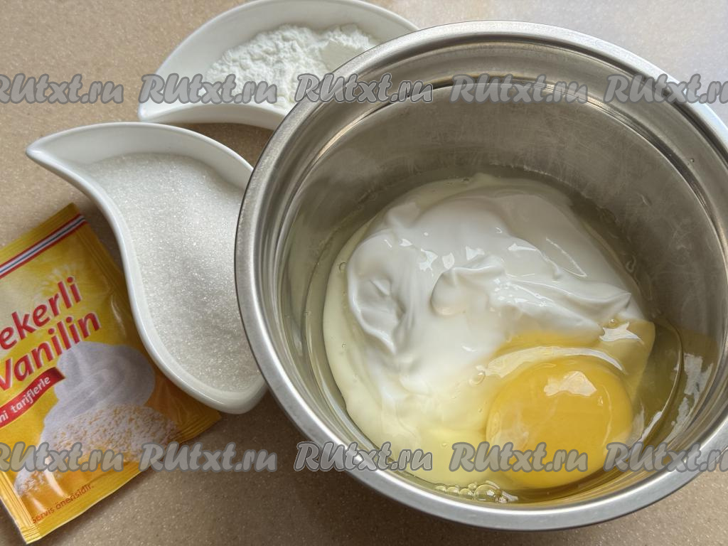 В миске соединить сметану и сырое яйцо.