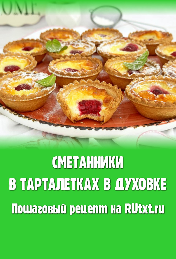 Запекать сметанники в тарталетках в разогретой до 180 градусов духовке минут 20-25. Сметанная начинка должна схватиться сверху и не иметь жидких участков на поверхности.