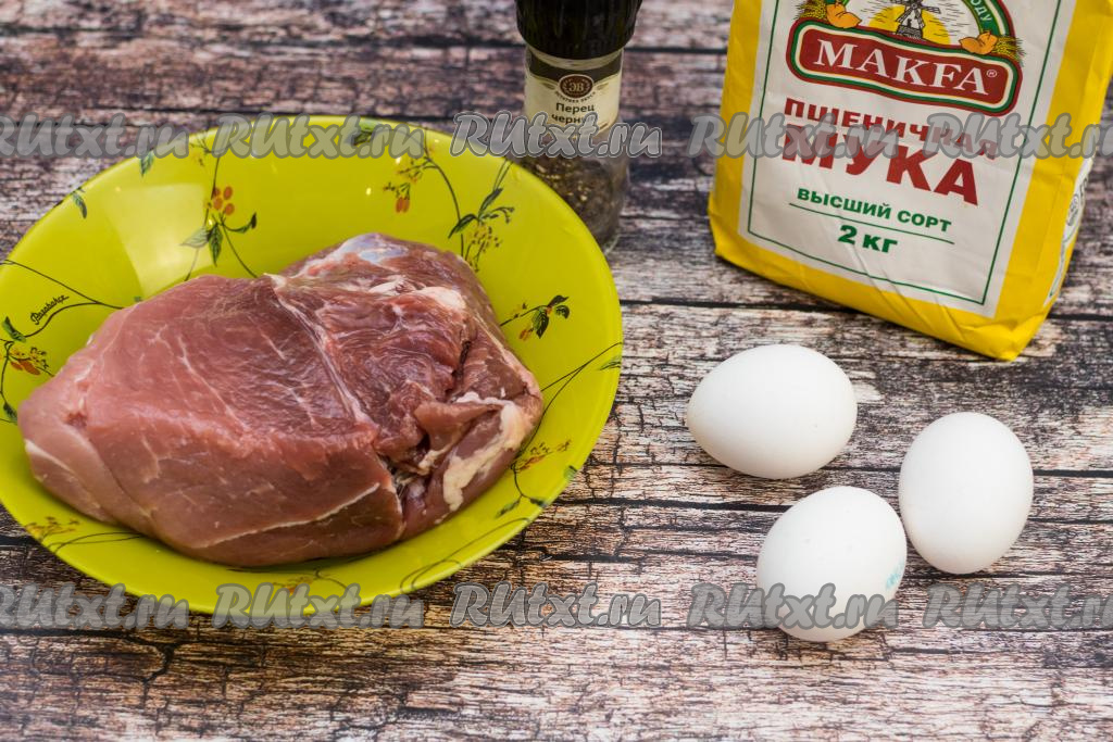 Подготовить продукты. Свинину лучше брать свежую (то есть ту, которая предварительно не была заморожена), тогда мясо будет более сочным. Свинину промыть водой, обсушить.
