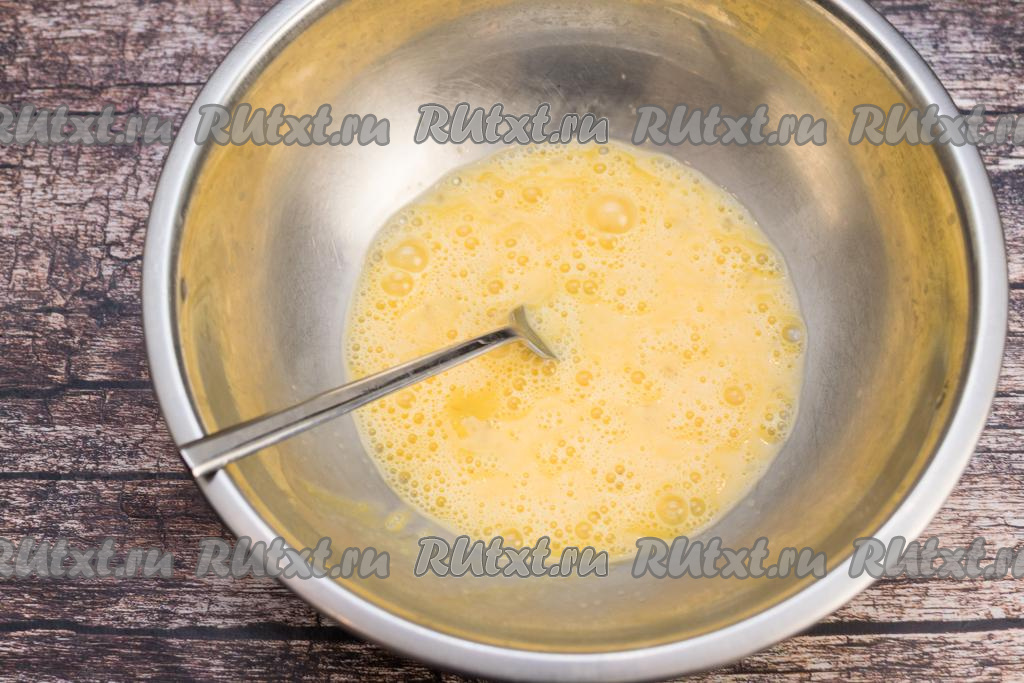 Вилкой (или венчиком) взболтать яйца до однородности.