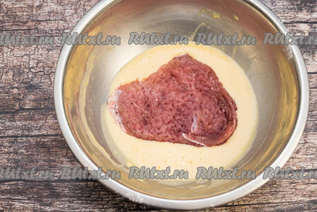 Я солю и перчу мясо с одной стороны. Специи можете использовать на своё усмотрение, я добавила только свежесмолотый чёрный перец.