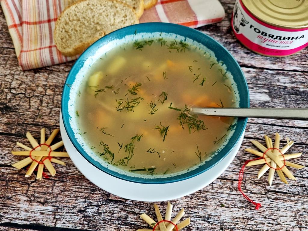 Предлагаю простой и очень удачный рецепт быстрого приготовления супа с тушёнкой и консервированной фасолью. Это первое блюдо получается сытным, аппетитным и вкусным. Готовлю я этот суп без зажарки овощей, потому что даже после того как с тушёнки убирается жировая прослойка, в котором она находится в банке, в мясе остаётся достаточно жира, чтобы сделать бульон насыщенным. Консервированная фасоль делает суп и более сытным, и аппетитным. Просто, быстро и вкусно, попробуйте!