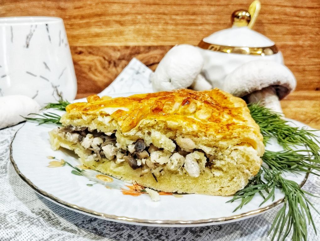 Для приготовления пирога с грибами и курицей потребуется: