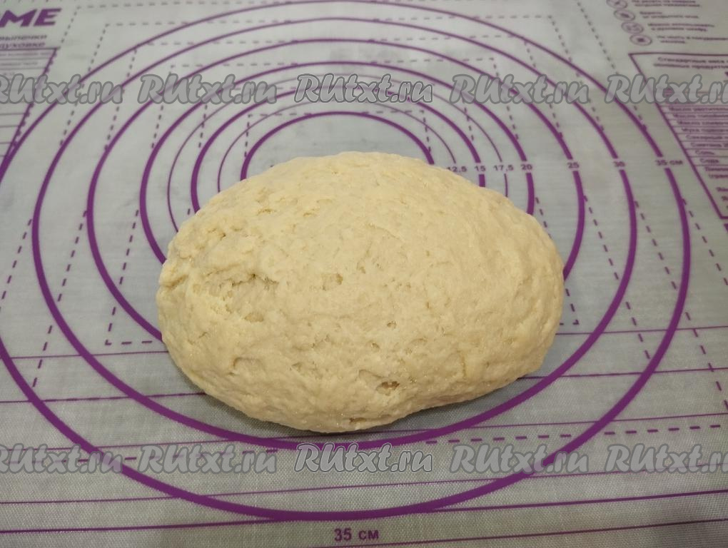 А после того как тесто начнёт собираться в ком, продолжаем замешивать его руками, подсыпая по мере необходимости оставшуюся муку. Вымешивать дрожжевое тесто для пирога руками в общей сложности нужно не менее 7 минут. Добавляя муку и вымешивая тесто, обязательно учитывайте, что оно должно быть эластичным, мягким, не липнущим к рукам. Вот так будет выглядеть замешанное дрожжевое тесто.