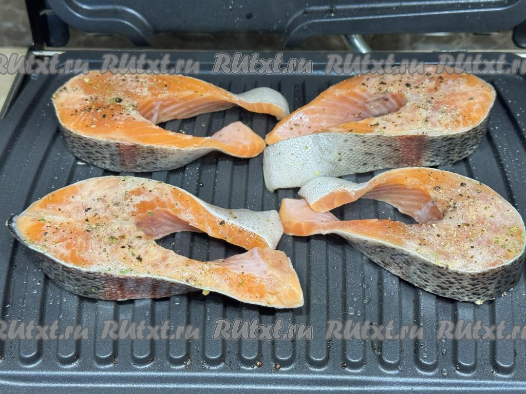 Электрический гриль позволяет и быстро, и просто приготовить вкусную рыбу. В этот раз предлагаю пожарить на электрогриле стейки форели. Рыбка получается очень вкусной, сочной, нежной, аппетитной. При подаче её можно дополнить гарниром на ваш выбор или салатом из свежих овощей.