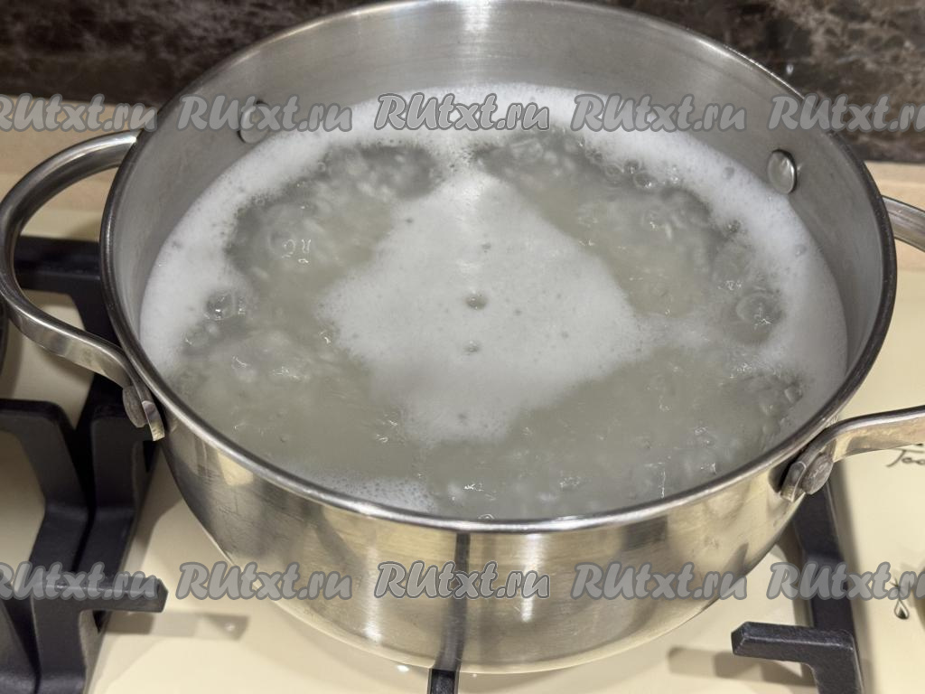 В кастрюлю с толстым дном влить 1 литр воды, всыпать подготовленный рис, перемешать, поставить на сильный огонь.
