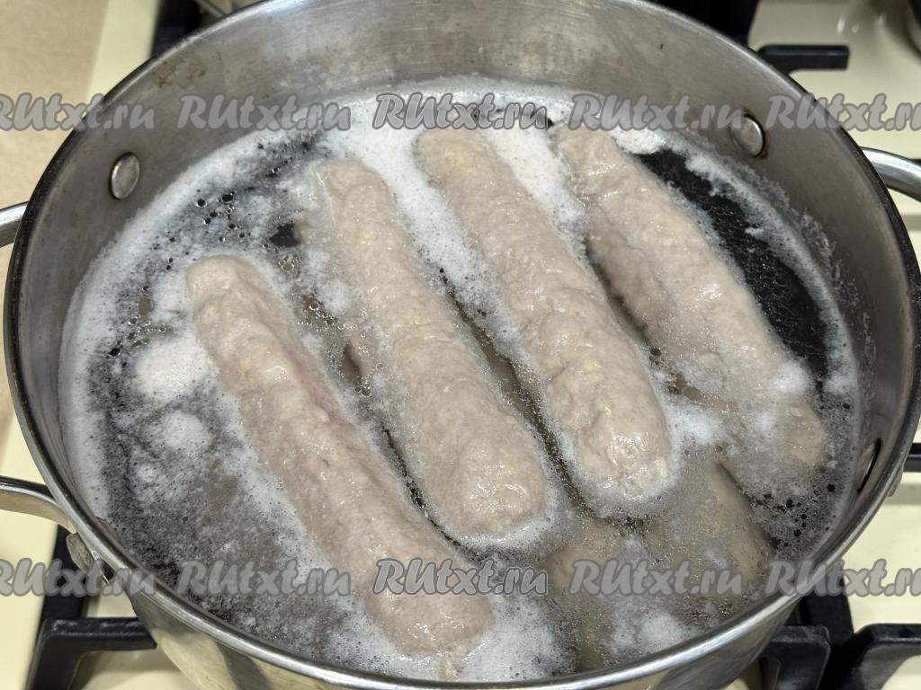 С момента закипания воды варить купаты на небольшом огне 3 минуты.