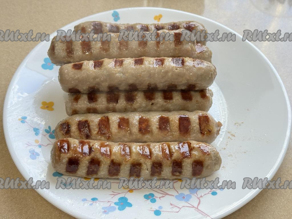 Готовые купаты переложить с электрического гриля на тарелку и сразу подать к столу.
