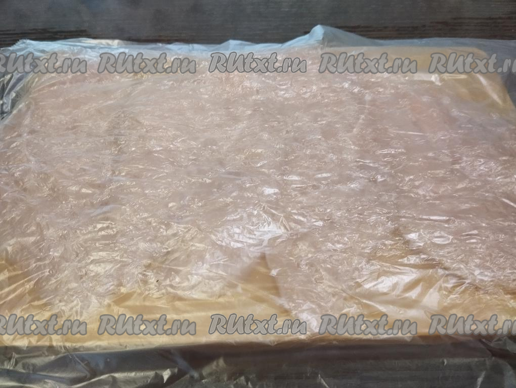 Для того брызги в процессе отбивания мяса не разлетались по столу, накрываем филе пищевой плёнкой. Отбиваем мясо кулинарным молоточком с одной стороны до толщины 4-5 миллиметров.