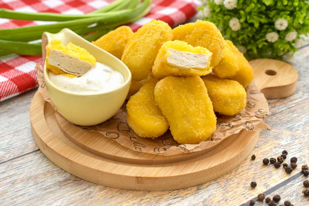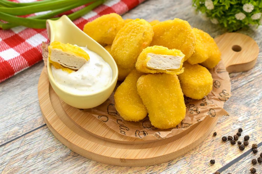 Благодаря маслу, в процессе приготовления в аэрогриле на наггетсах получится более хрустящая корочка, при этом внутри кусочки мяса останутся мягкими и сочными.