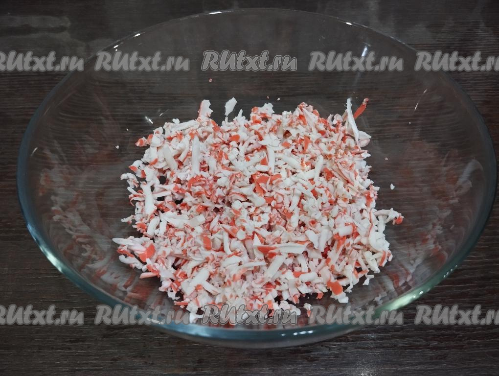 Соль в это блюдо я не добавляю, так как соли вполне хватает в крабовых палочках и сыре.
