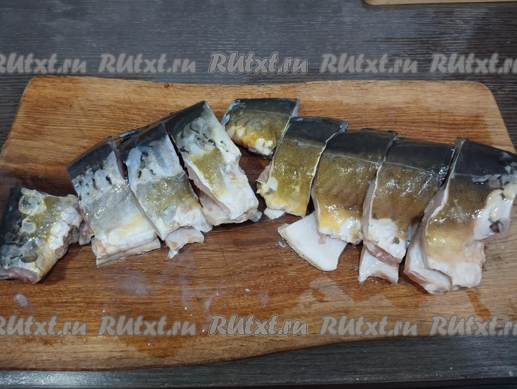 Если карп заморожен, полностью размораживаем его при комнатной температуре. Каждого карпа очищаем ножом от чешуи. Отрезаем головы (их в этом рецепте использовать не будем), плавники и хвосты. Разрезаем брюшко каждой рыбы, удаляем внутренности вместе с тёмной плёночкой из брюшка. Хорошо промываем карпов и внутри, и снаружи под проточной водой. Разрезаем каждого карпа ножом на порционные кусочки (шириной примерно 3-4 сантиметра).