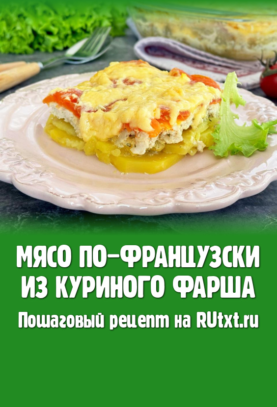 Готовить мясо по-французски из куриного фарша в духовке в течение 1 часа.