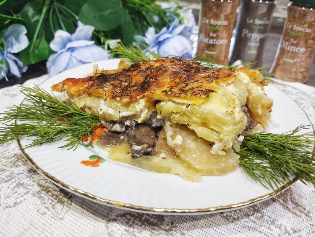 Готовое блюдо достаём из духовки, нарезаем на порционные кусочки и в горячем виде подаём к столу. И картошка, и грибы, запечённые под майонезом и сыром, получаются сочными, нежными, вкусными. Это простое блюдо отлично разнообразит ваше меню!