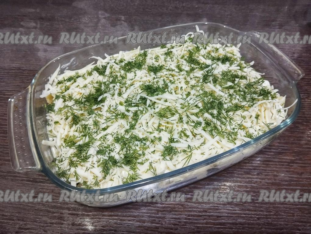Слой сыра посыпаем мелко нарезанным укропом.