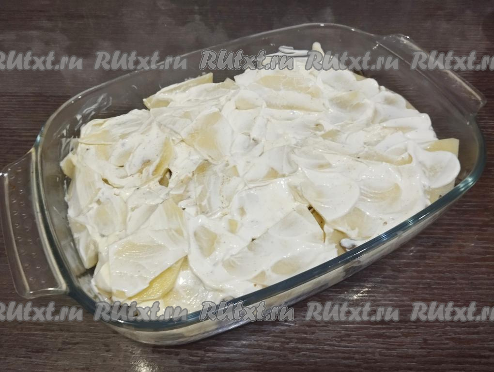 Смазываем картошку сверху майонезом.