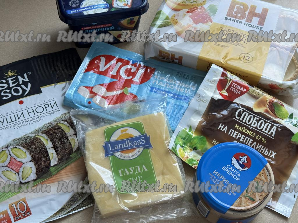 Подготовить продукты. Крабовые палочки заранее разморозить при комнатной температуре. Икру можно взять недорогую (мойвы, салаки, щуки), я взяла деликатесную икру с кусочками подкопчённого лосося.