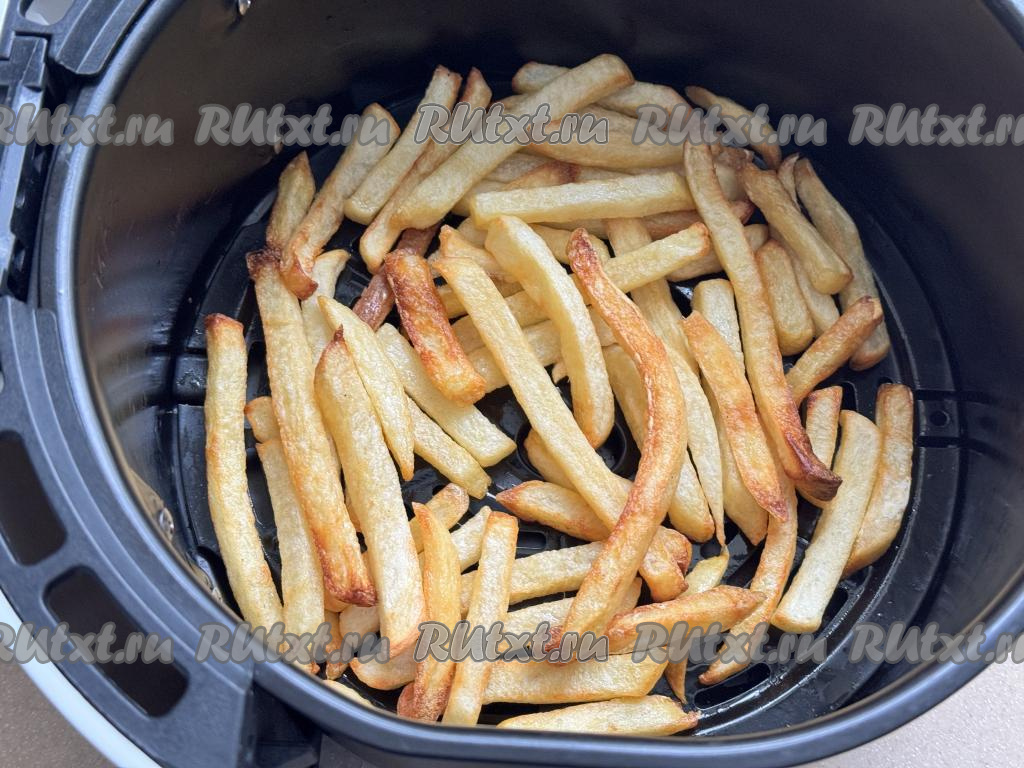 Поместить чашу с замороженным картофелем в аэрогриль, установить температуру 180 градусов, время - 20 минут. В процессе запекания каждые 5 минут нужно будет доставать чашу из аэрогриля и встряхивать картошку, чтобы она равномерно запекалась, покрываясь румяной корочкой со всех сторон. По прошествии 20 минут проверить готовность картофеля фри, для этого его нужно проколоть зубочисткой, если прокалывается легко, значит картошка готова. Если прокалывается не очень хорошо, тогда просто увеличьте время запекания минут на 5. Продолжительность запекания во многом зависит от мощности аэрогриля и от сорта картофеля, который вы купили. У меня по прошествии 20 минут картошка фри успела полностью приготовиться, стала приятно подрумяненной.