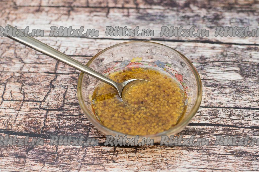 Куриные ножки моем, обсушиваем. В небольшой ёмкости соединяем растительное масло, зернистую горчицу и достаточно жидкий мёд. У меня мёд был слегка засахаренный, поэтому я его предварительно прогрела в течение 10 секунд в микроволновке. Перемешиваем горчицу с мёдом, маслом и горчично-медовый соус для маринования куриных ножек готов.