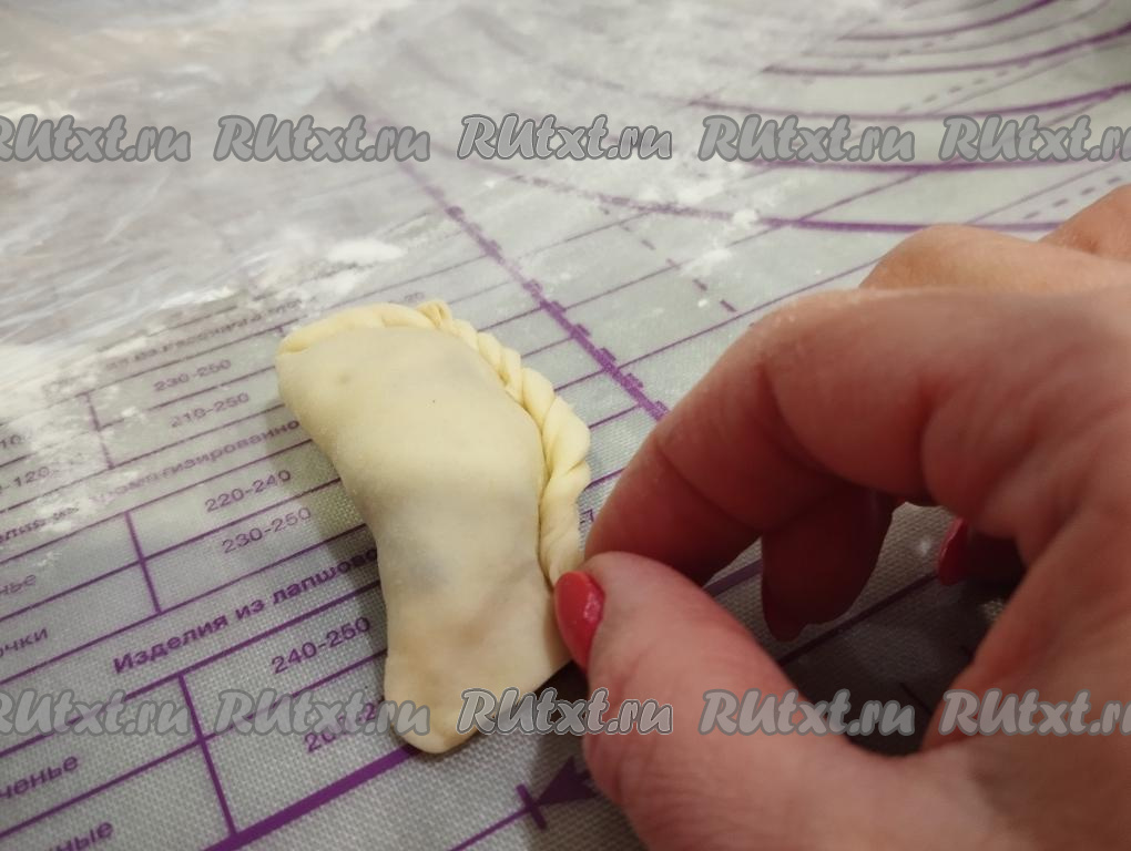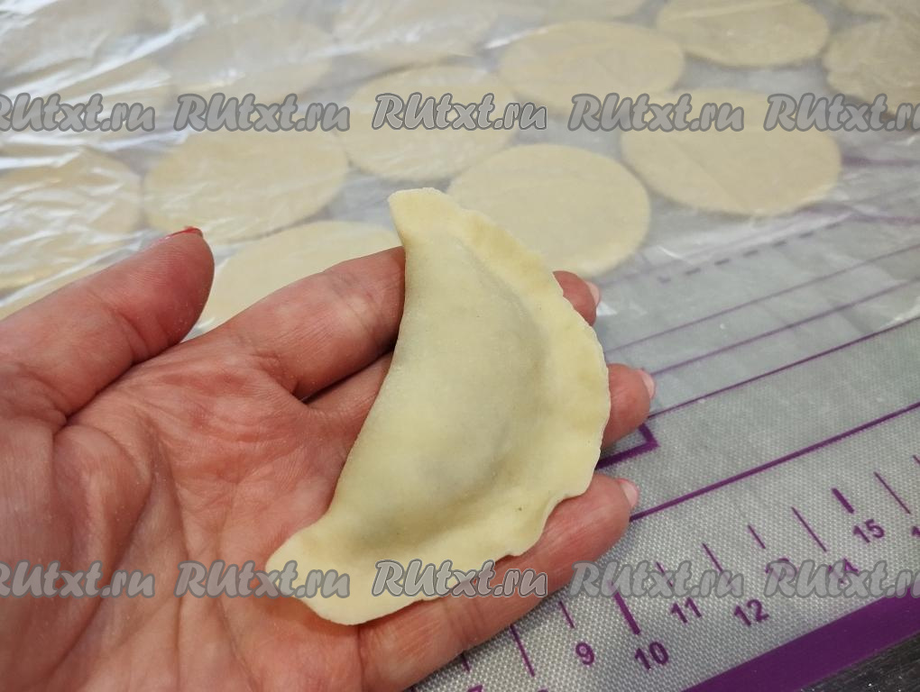 Соединяем края каждого кружка над начинкой, крепко скрепляя края вареника руками.