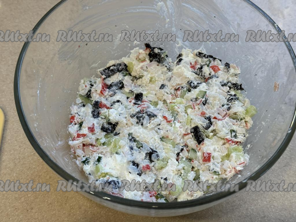 Сюда же добавить творожный сыр, перемешать и масса для формирования суши-шариков готова.