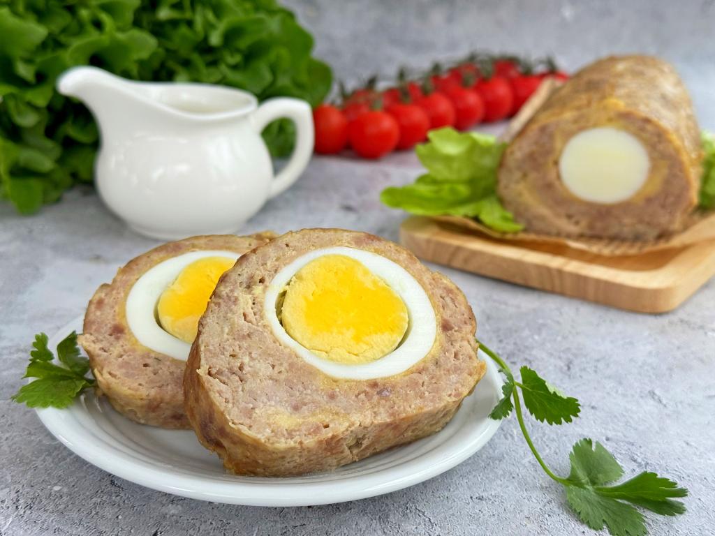 Предлагаю приготовить в аэрогриле рулет из фарша с начинкой из варёных яиц. Готовится мясной рулет несложно, получается очень вкусным, сочным, к тому же он очень красиво смотрится в разрезе. Это аппетитное блюдо можно подать и к семейному ужину, и к праздничному столу. Мне очень понравился мясной рулет с яйцом, приготовленный в аэрогриле, поэтому с удовольствием делюсь рецептом!