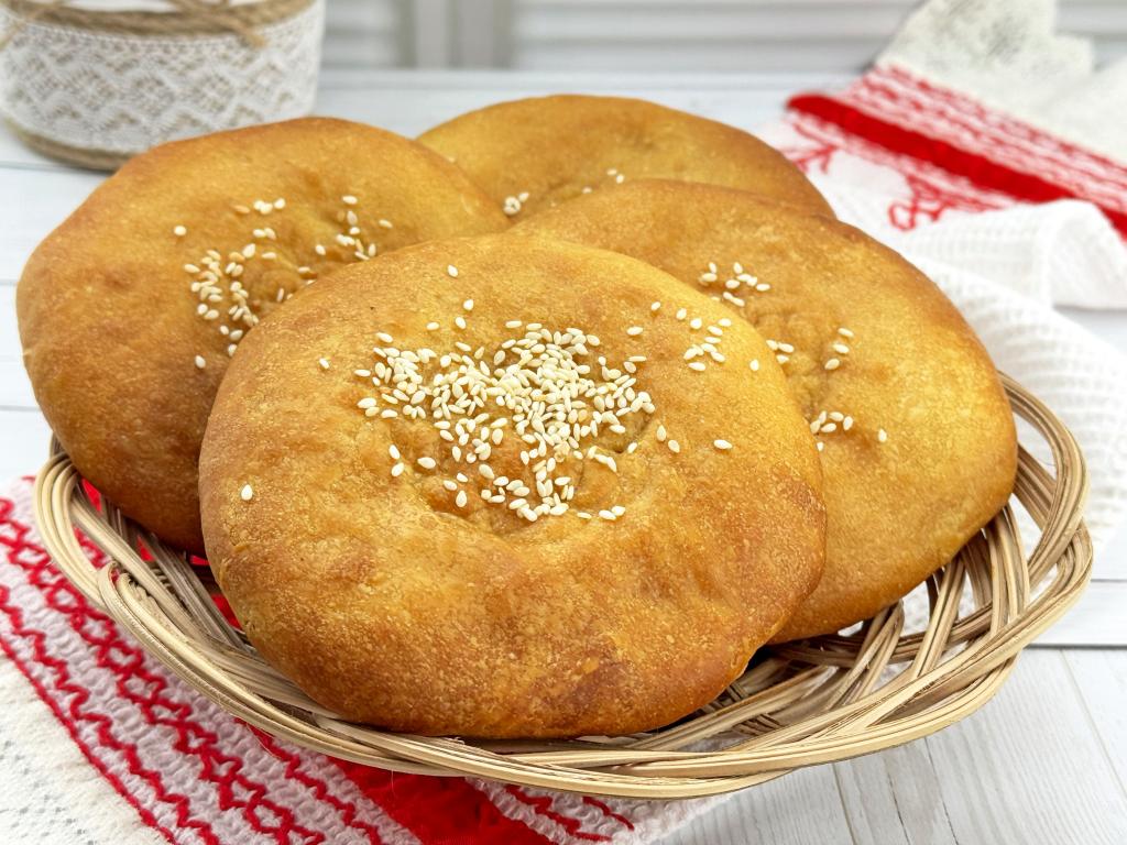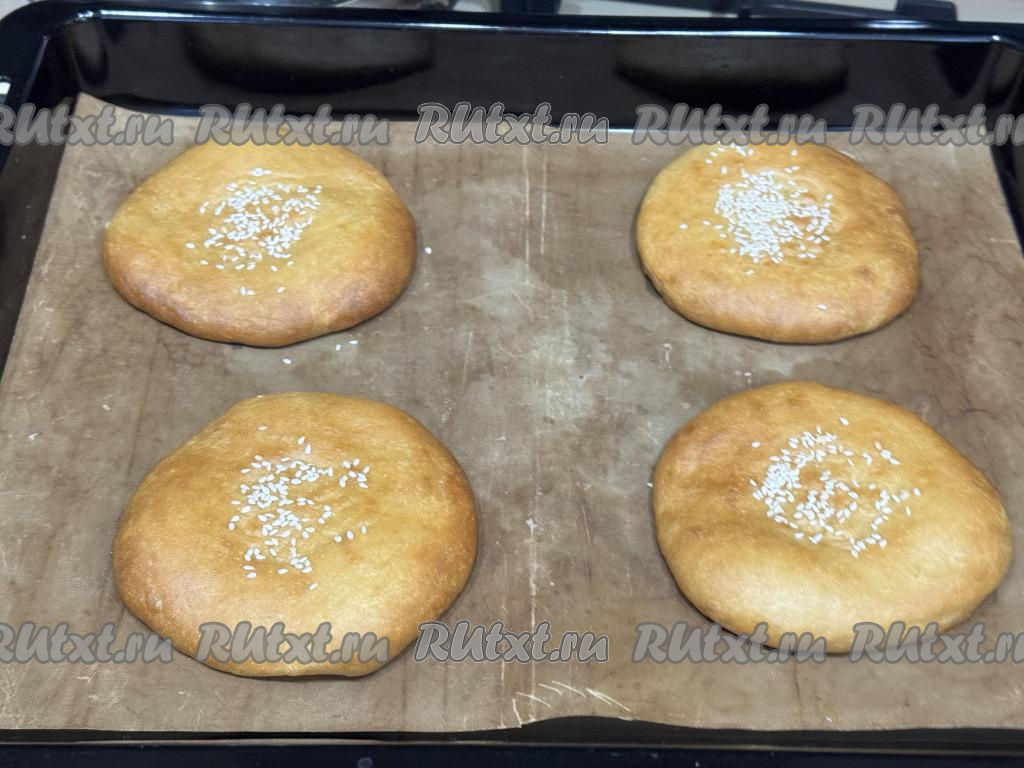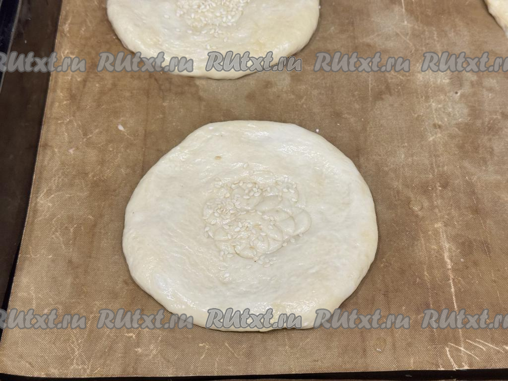 По желанию присыпать лепёшки в центре кунжутом или маком.
