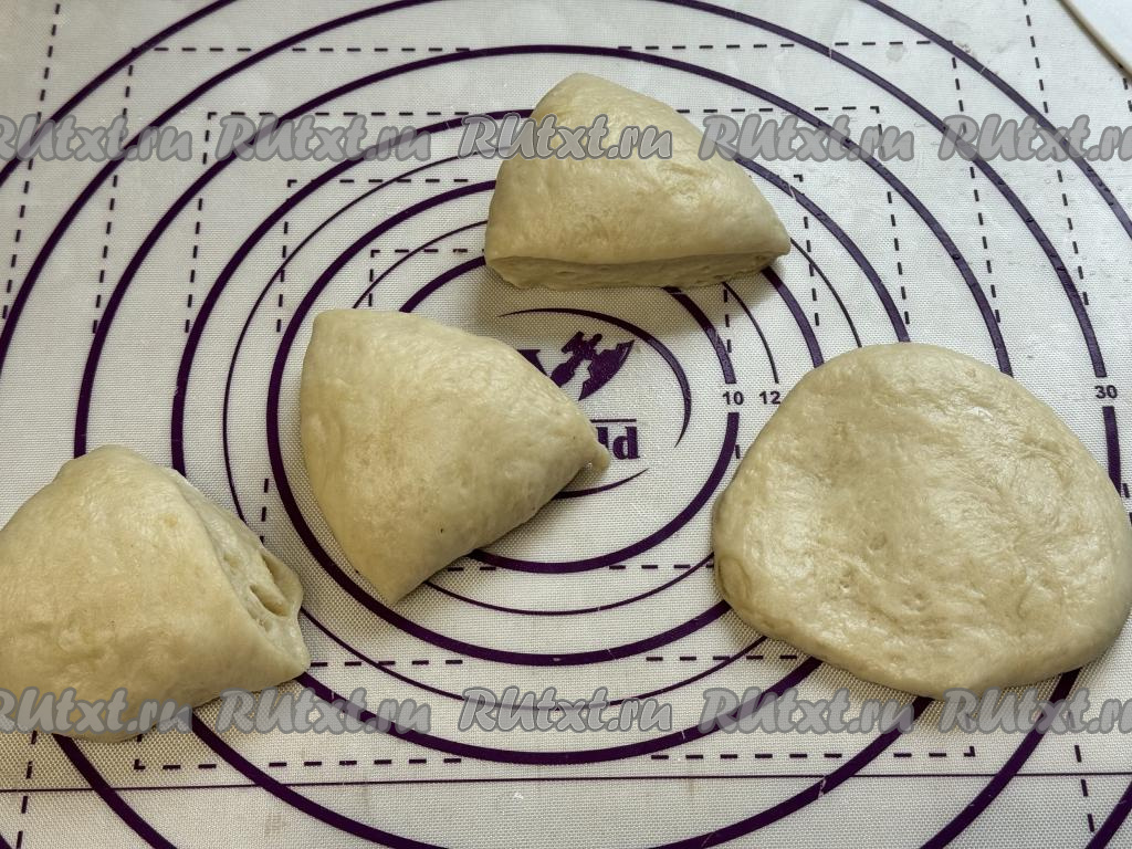 Разделить тесто на 4 равных части.