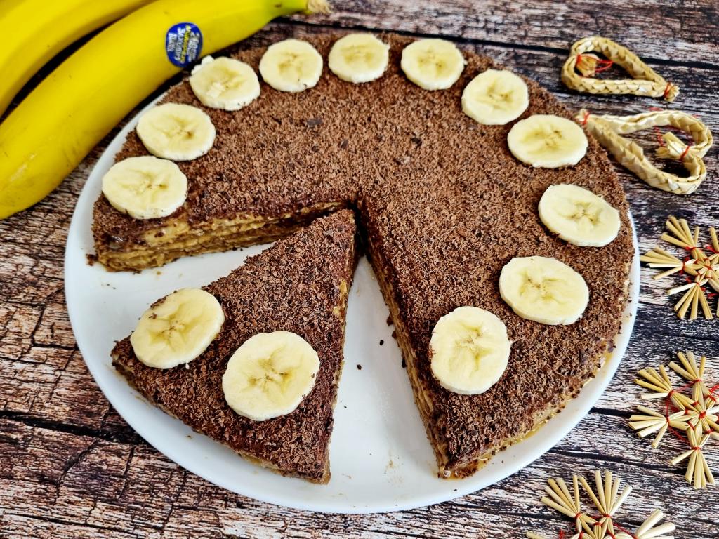 Можно дополнительно нарезать кружочки банана и выложить по кругу.