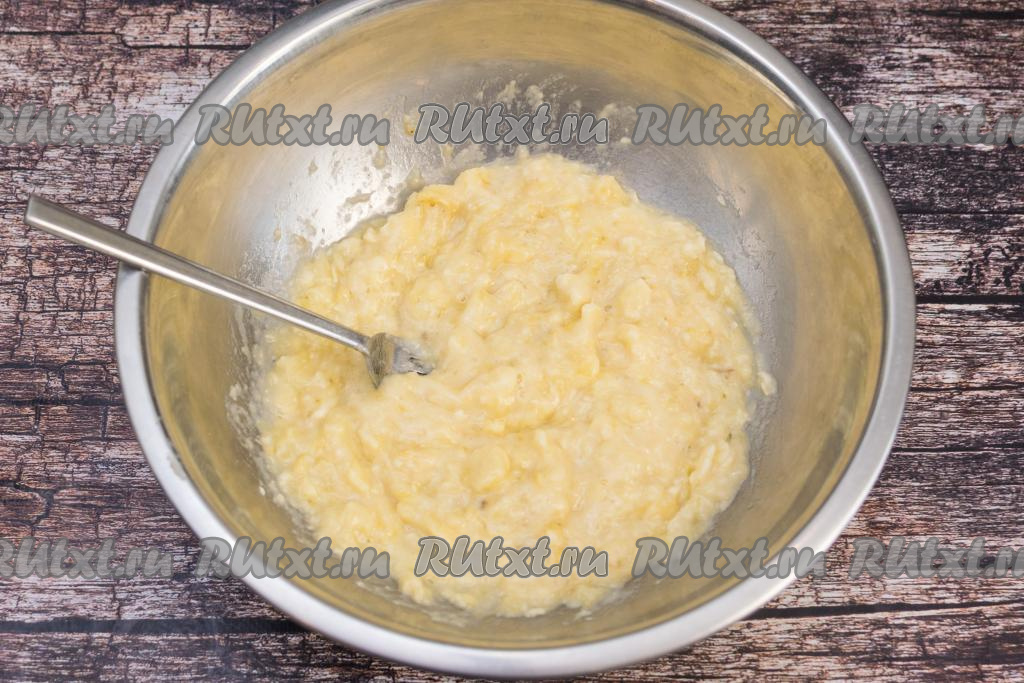 Размять бананы вилкой до получения пюре.