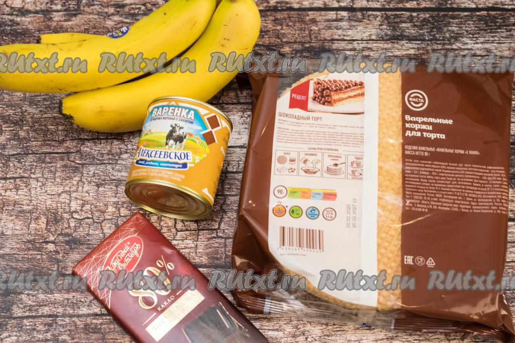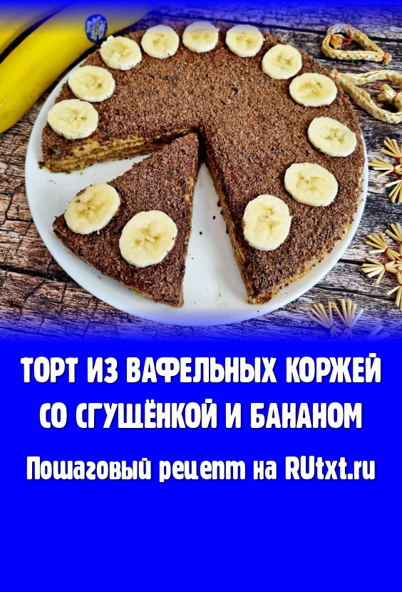 Если вы хотите приготовить нежный, вкусный, воздушный торт, не тратя много времени на кухне, тогда предлагаю вариант формирования десерта из покупных вафельных коржей, сгущёнки и банана. Сочетание вафельных коржей и сгущёнки знакомо многим. Но, добавив к сгущёнке размятый банан, вы будете приятно удивлены, насколько обогатится и станет более интересным вкус торта. Главное, это купить качественную варёную сгущёнку от проверенного производителя и выбрать спелые бананы. Благодаря отменному вкусу, этот торт съедается очень быстро! Рекомендую приготовить!