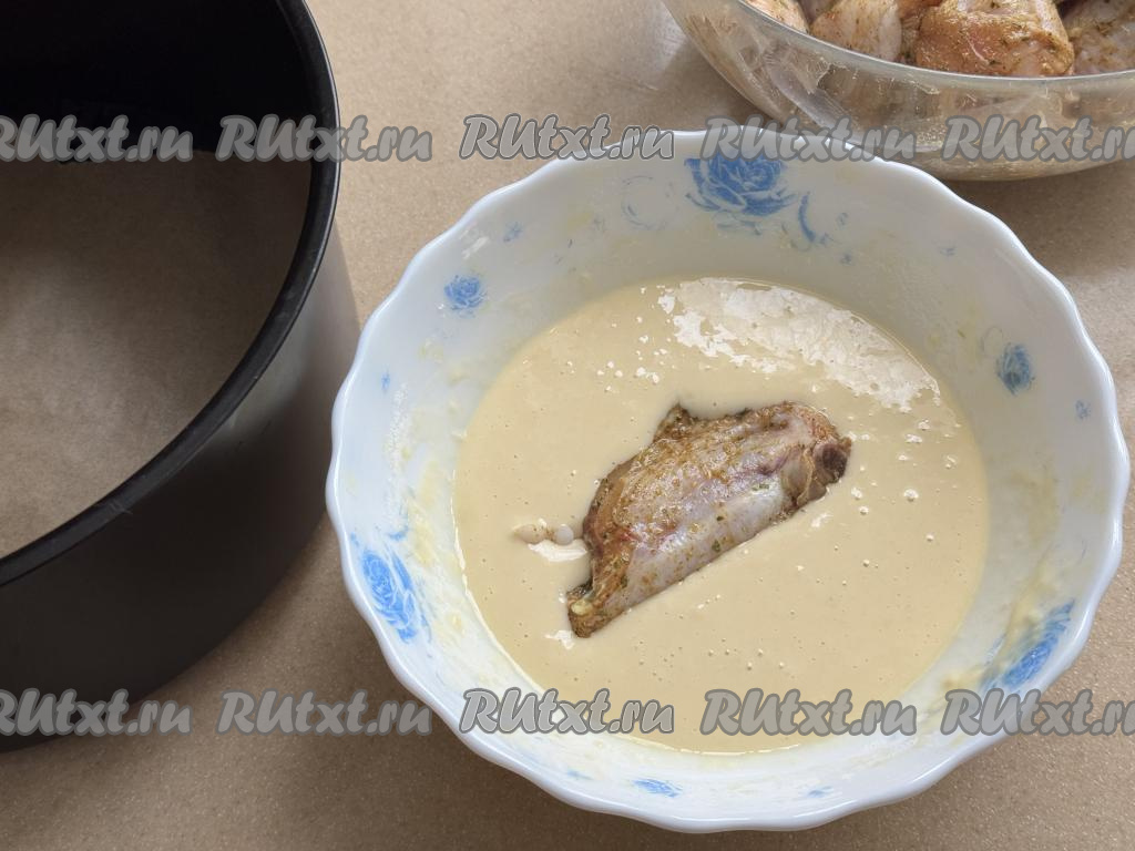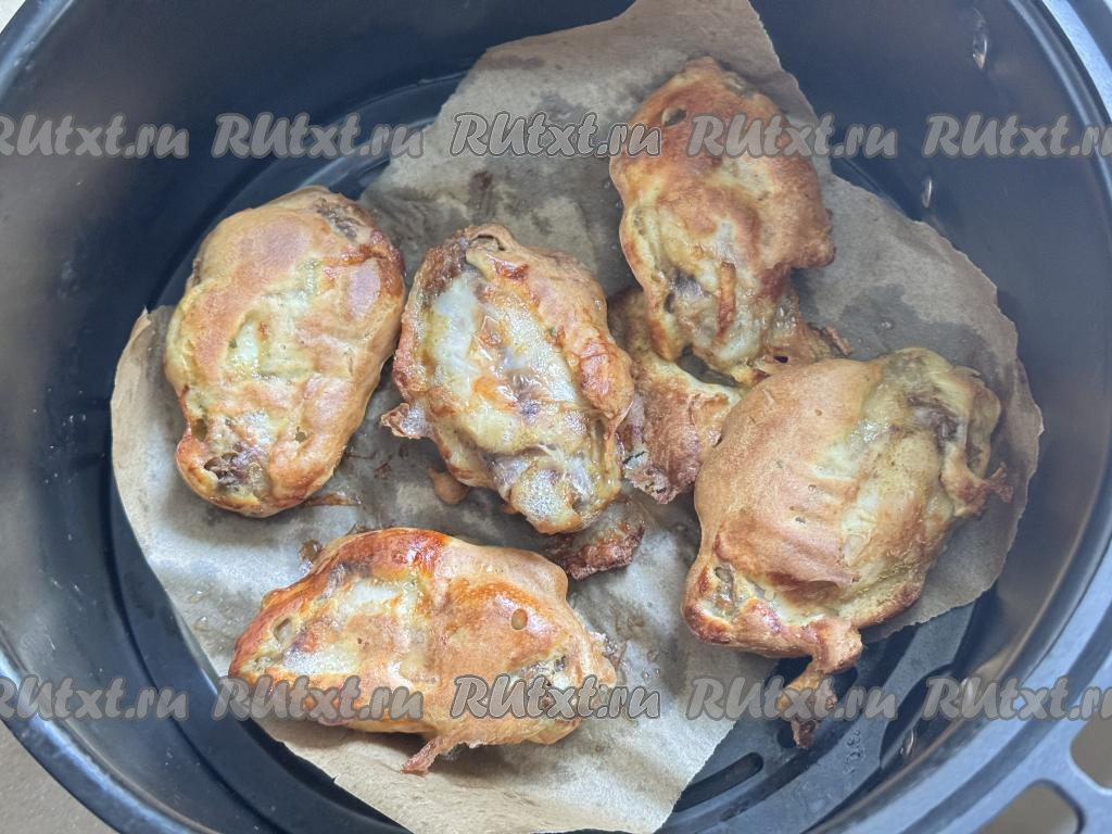 Крылышки должны лежать в чаше аэрогриля в один слой. Покрывать кляром нужно столько крыльев, столько вы сможете выложить в один слой в чашу. Все крылышки одновременно у вас в чашу не поместятся, поэтому запекать их нужно будет в несколько заходов.