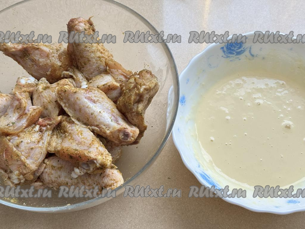 Оставшиеся 2 части каждого крыла выложить в глубокую миску.