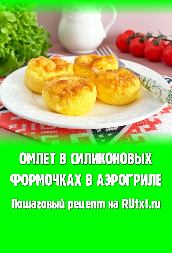 Омлет чаще всего готовят на сковороде. А я предлагаю запечь омлет в силиконовых формочках в аэрогриле. Готовится омлет просто и достаточно быстро, а получается пышным, нежным, воздушным. Это вкусное, аппетитное блюдо можно подать на завтрак, дополнив, по желанию, нарезкой из свежих овощей.