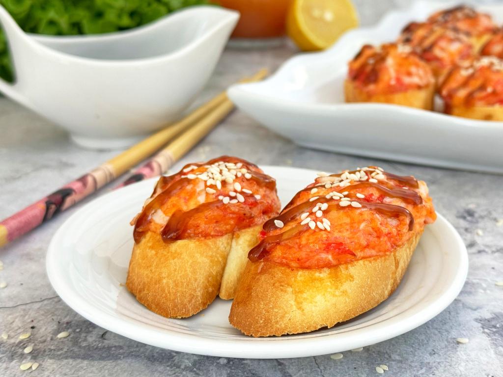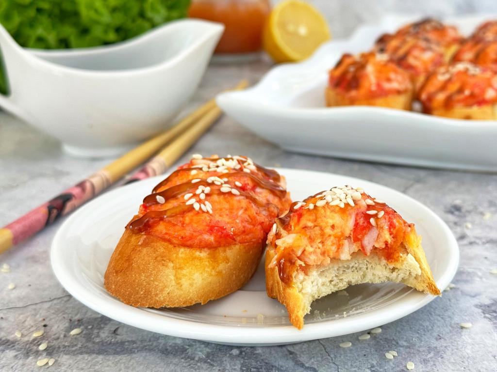 Предлагаю приготовить вкусные, аппетитные, насыщенные горячие бутерброды на багете в духовке. Благодаря крабовым палочкам, подкопчённой икре и сыру, бутерброды по вкусу очень напоминают роллы, их можно назвать и ленивыми суши, хотя они и готовятся без риса. Формируются эти суши-брускетты очень просто и быстро. Их можно подать к столу и в качестве перекуса в обычный день, и в качестве закуски для фуршетного стола. Приготовьте это блюдо и, не тратя много времени на кухне, вы получите замечательные горячие бутерброды, попробовав которые, вы убедитесь в том, что по вкусу они действительно напоминают роллы!
