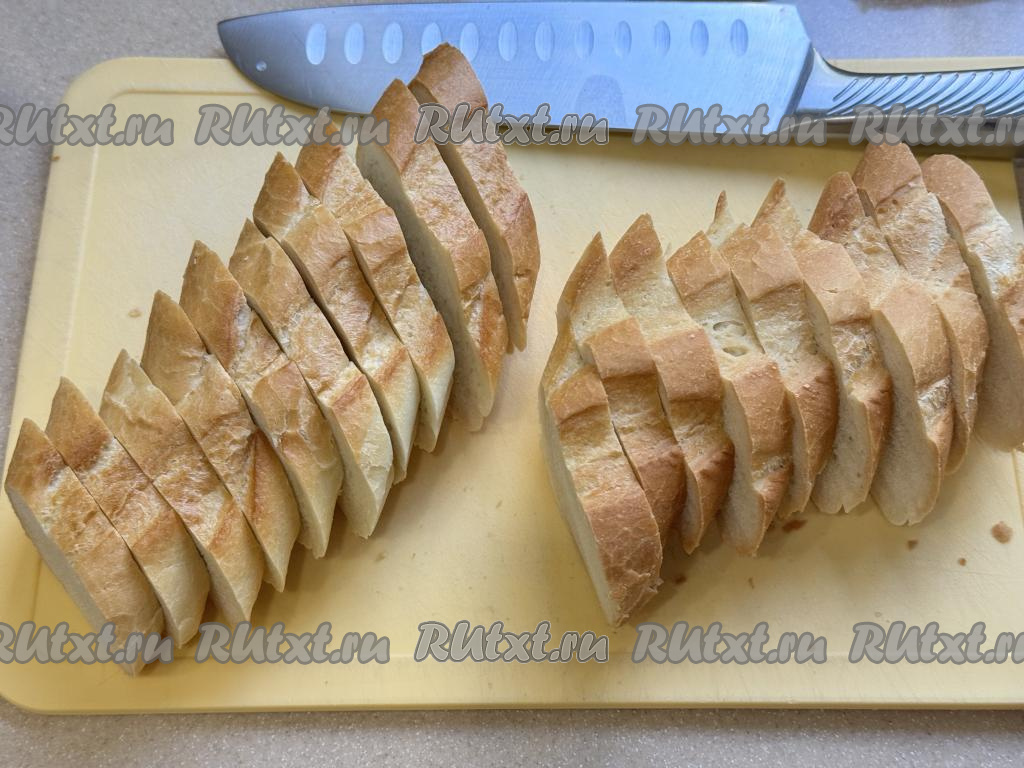Багет нарезать на порционные кусочки.