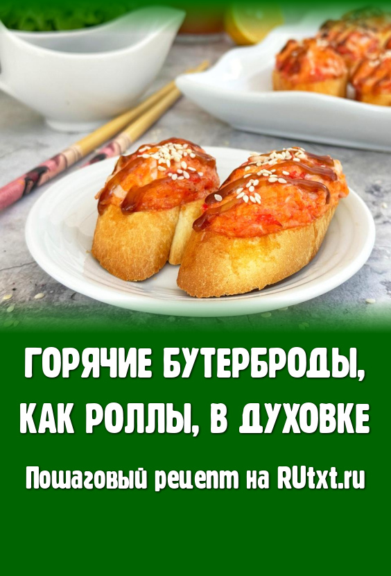 Готовые бутерброды достать из духовки, переложить на тарелку. По желанию, на горячие бутерброды можно нанести решётку из соуса "Терияки" и присыпать кунжутом. Подать в качестве закуски или перекуса к столу. Уверена, вкус этих аппетитных, сытных бутербродов понравится всем любителям суши и роллов.