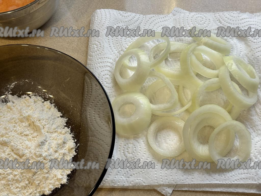 Выложить луковые кольца на бумажное полотенце и обсушить.