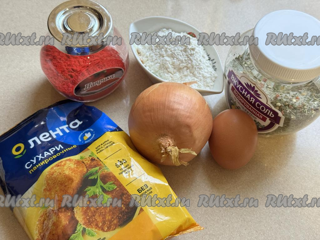 Подготовить продукты. Луковицу нужно брать крупную, чтобы кольца получились немаленькими, тогда они будут особенно вкусными и аппетитными после запекания в аэрогриле.
