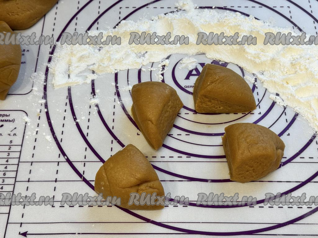 Разделить тесто на 15 одинаковых частей.