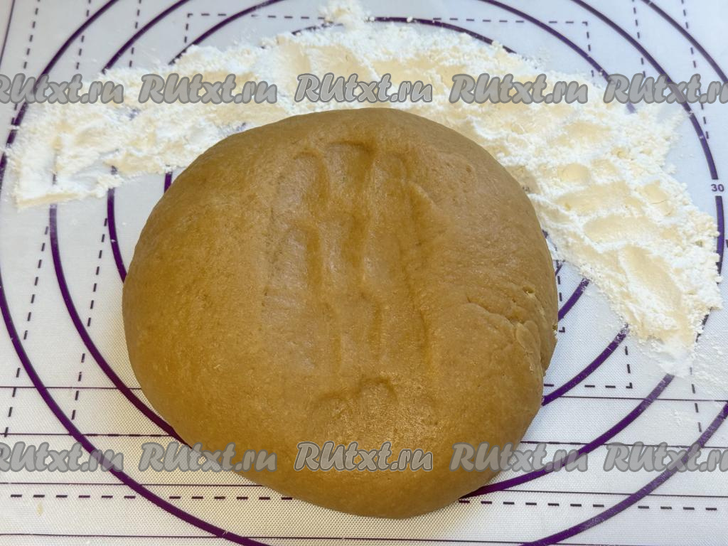 А как только в процессе добавления муки и полного вмешивания её, тесто соберётся в ком, переложить его на рабочую поверхность, присыпанную мукой, и вымесить руками до гладкого состояния. Готовое тесто для медовика должно получиться мягким, не липнущим к рукам.