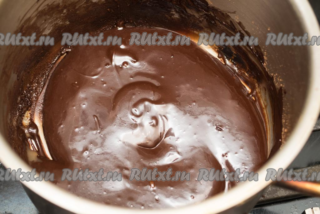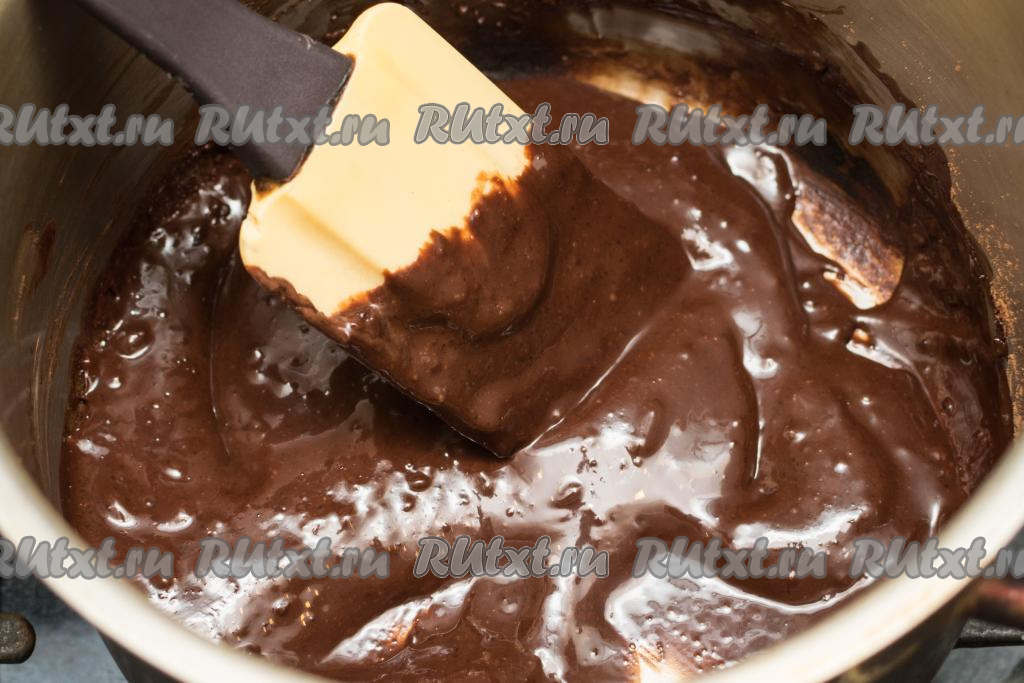 Перемешать шоколадную массу и поставить на огонь ниже среднего.