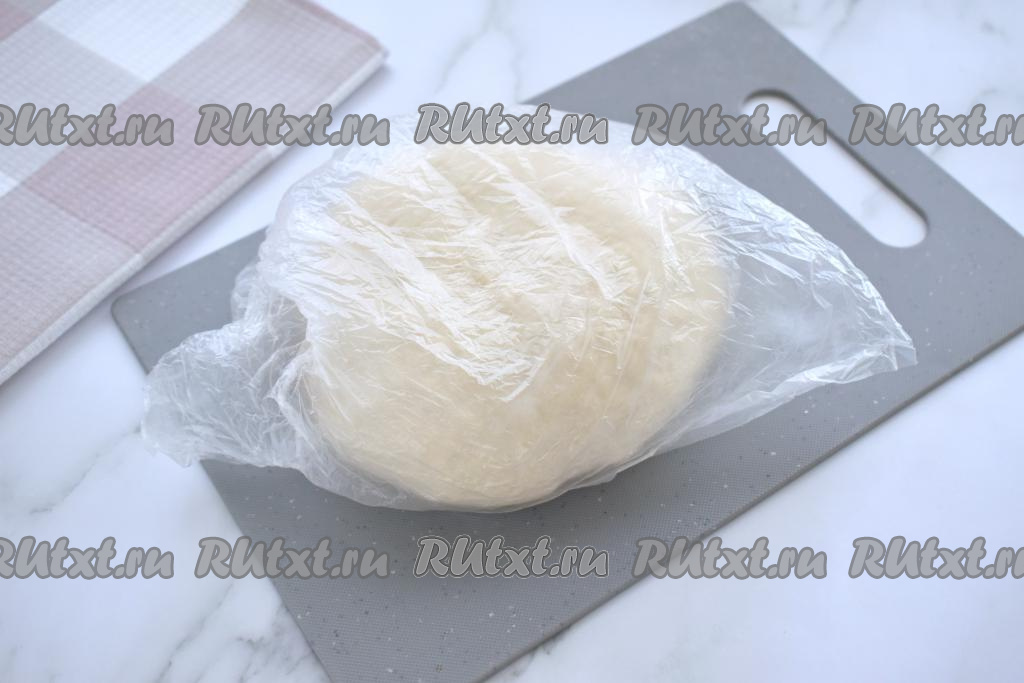 Замешанное тесто для пельменей заворачиваем в целлофановый пакет (или в пищевую плёнку) и убираем в холодильник на 15-20 минут.